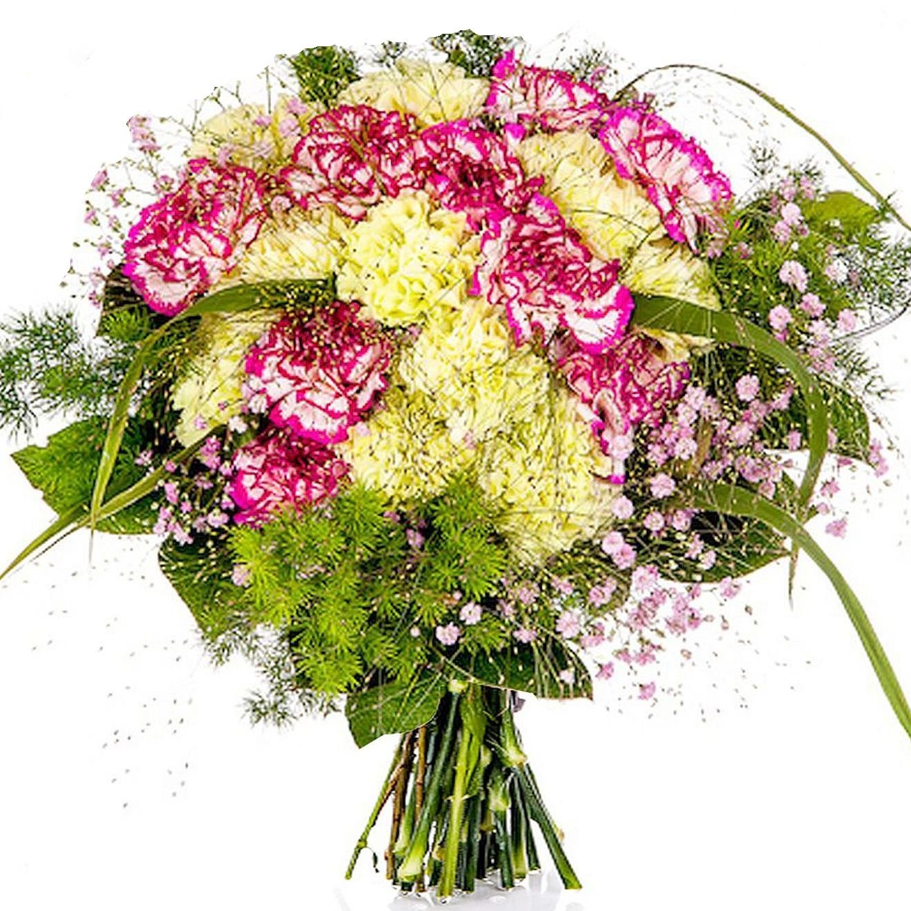 Naše pestrá kytice z karafiátů zaujme jemným propojením bílé a sytě růžové barvy, doplněné vzdušnou gypsophilou a svěží zelení. Kombinace těchto květin vytváří harmonickou a optimistickou atmosféru, která se skvěle hodí jako překvapení k narozeninám i milé pozornosti pro každodenní potěšení. Každý detail kytice pečlivě ladíme, abychom umocnili její svěžest a elegantní dojem. Využíváme pouze profesionálně uvázané květiny a dbáme na bezchybnou formu předání. Doručujeme v den objednávky během pracovních dnů, samozřejmostí je možnost objednat přesný čas doručení i potvrzení doručení e-mailem.