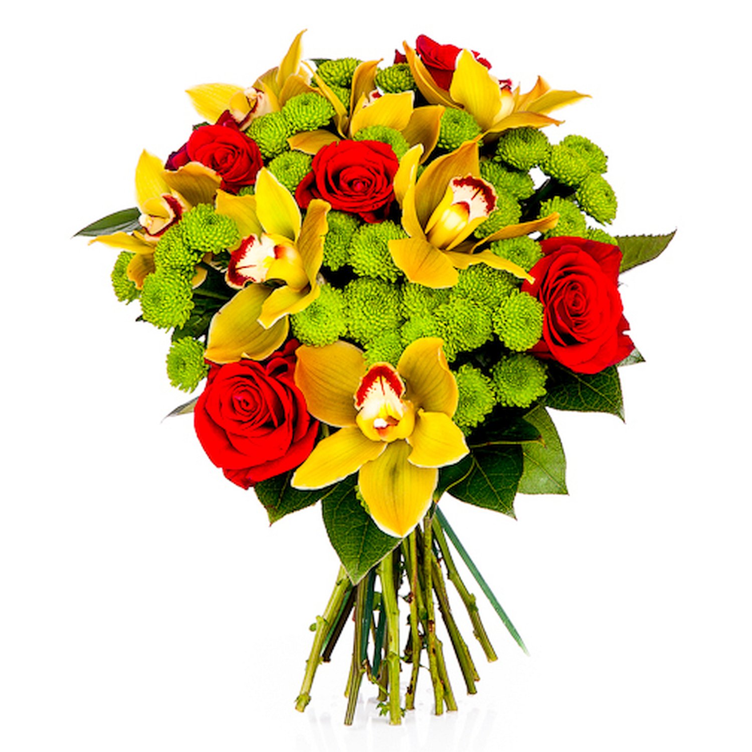 Naše kytice je oslavou hravých kontrastů a dokonalé harmonie. Žluté orchideje vynikají svou exotickou krásou a v kombinaci s červenými růžemi vytvářejí energický a vibrantní celek, který je decentně zjemněn zelenými santinami i svěžími listy. Kytice působí optimisticky a hřejivě – hodí se pro radost, gratulaci i každodenní překvapení, kdy chceme někomu vykouzlit úsměv na tváři. Doručujeme v den objednávky během pracovních dnů; samozřejmostí je možnost zvolit přesný čas doručení. Profesionální vazba je zárukou dokonalé prezentace a doručovací potvrzení dostanete přímo na e-mail.