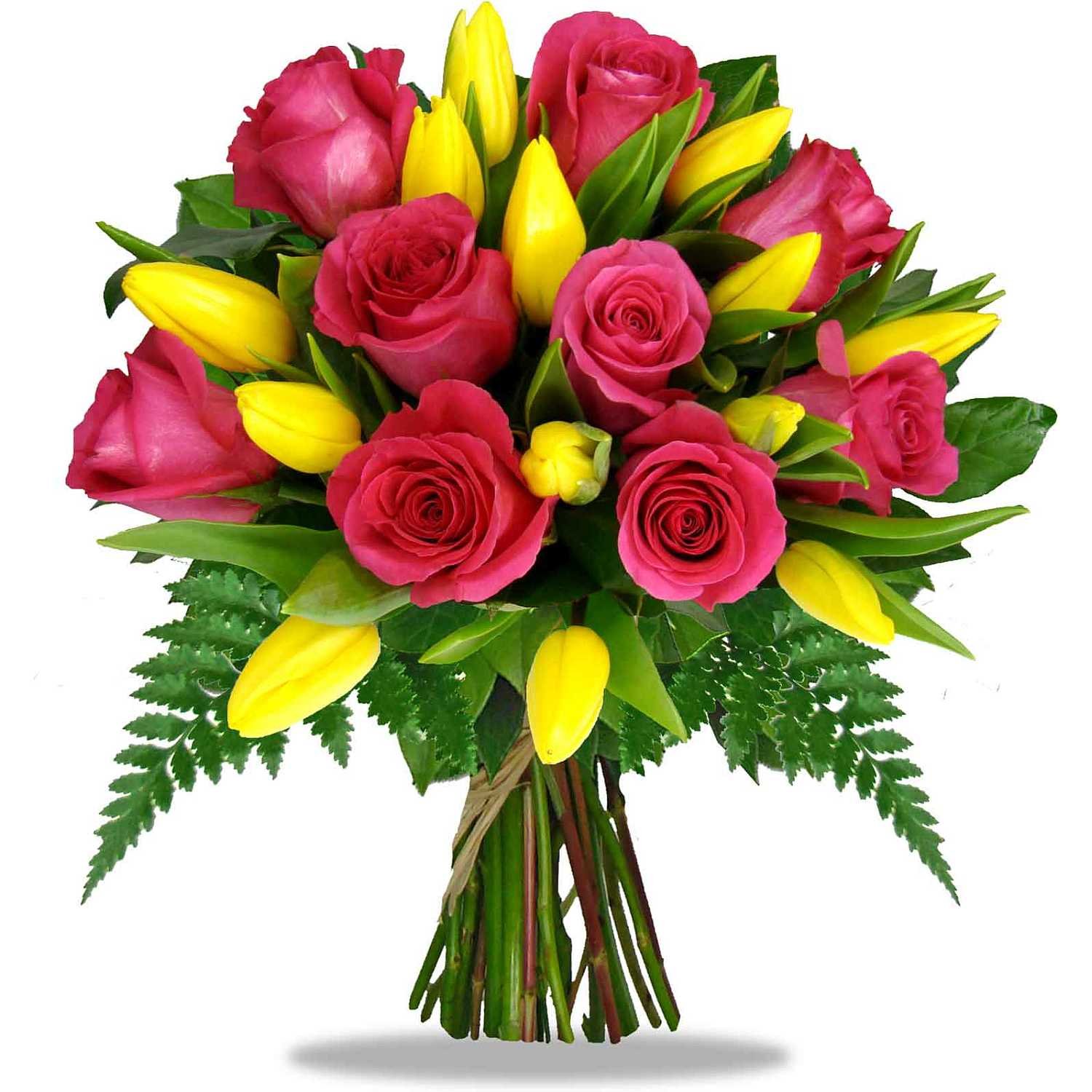 Růže a žluté tulipány
