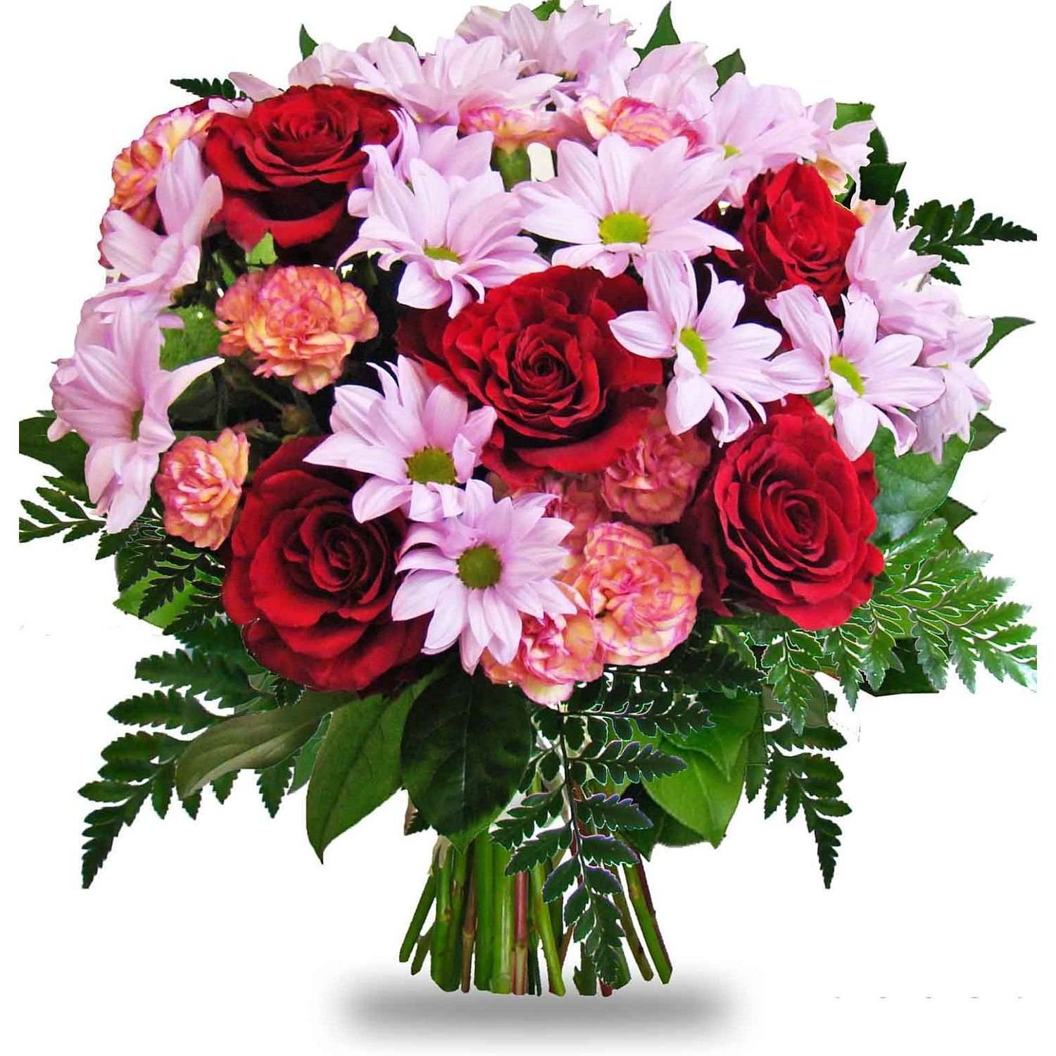 | Standardní | 5 ks růže, 2 ks chrysanthéma, 3 ks trsový karafiát a dekorativní zeleň |
