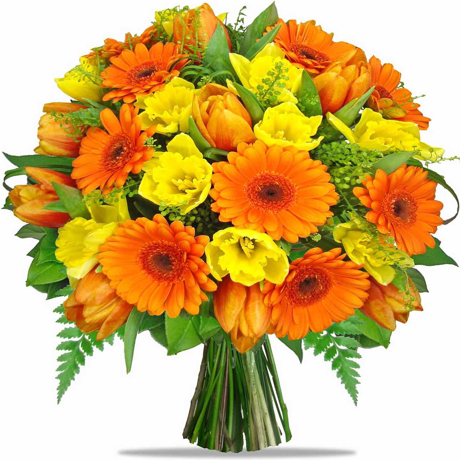 Naše zářivá kytice v sobě snoubí svěžest jarních narcisů, energii tulipánů a hravost germínek v harmonickém spojení oranžové a žluté. Tyto odstíny společně vytvářejí optimistickou a veselou atmosféru, která prozáří každý interiér. Kytice je perfektní volbou pro oslavu narozenin, přání brzkého uzdravení i jako překvapení jen tak pro radost. Zakládáme si na profesionálním vázání a květiny předáváme osobně s maximální vstřícností. Doručujeme v den objednávky během pracovních dnů, s možností zvolit přesný čas doručení. O doručení navíc dostanete potvrzení e-mailem, abyste měli vždy jistotu, že kytice bezpečně dorazila na místo.
