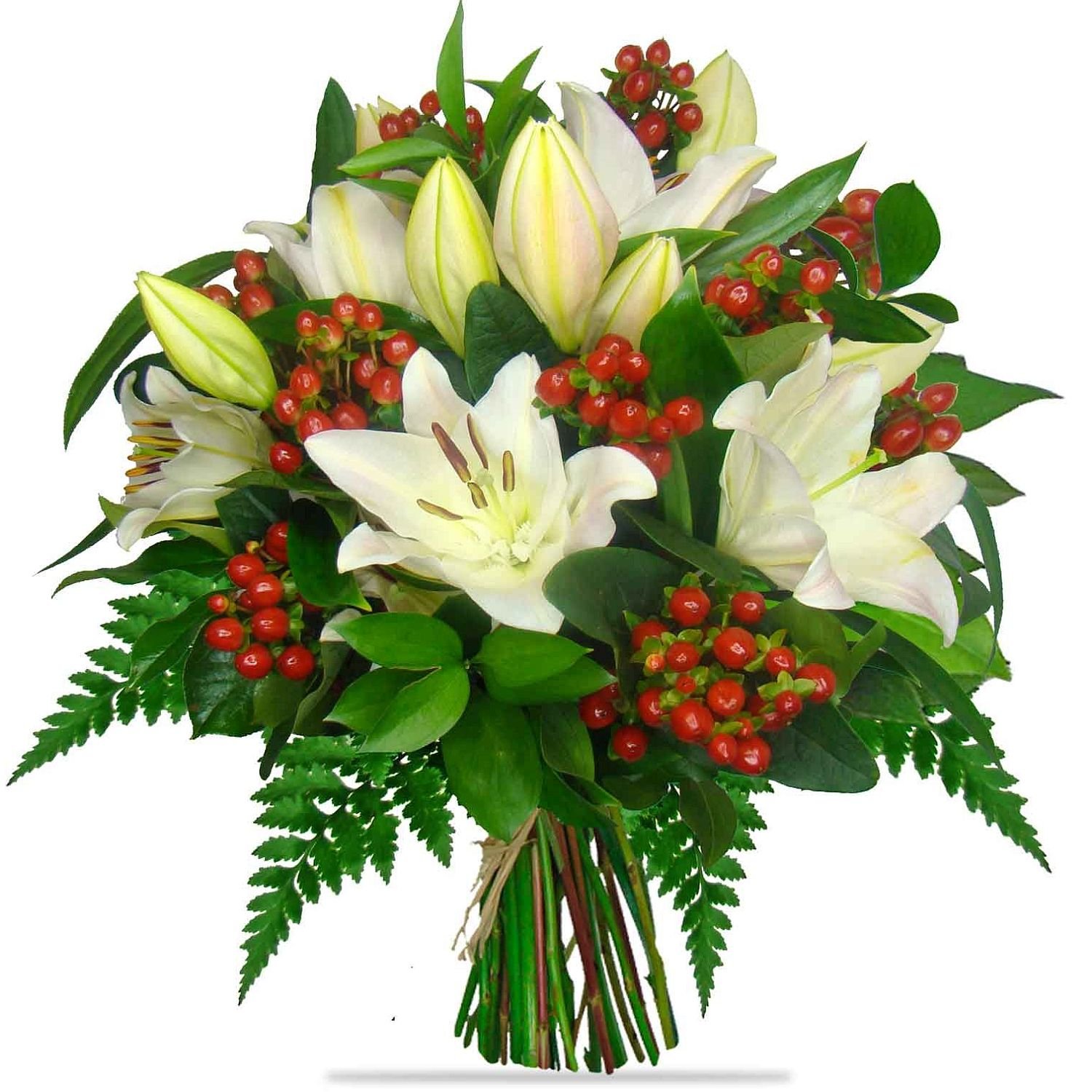 Tato elegantní kytice v sobě spojuje královské lilie s výrazným hypericem a decentní okrasnou zelení, která celému aranžmá dodává hebkou svěžest. Výrazné bílé lilie vyniknou v kontrastech s červenými bobulemi a působí velmi slavnostně a svěže zároveň. Tato kombinace vnese do interiéru radostnou atmosféru, hodí se k narozeninám, k výročí nebo jako vřelé poděkování. Kytici pro vás vždy vážeme s maximální pečlivostí a důrazem na detail, aby opravdu potěšila. Nabízíme doručení v den objednávky i možnost přesně stanovit čas doručení. S každým předáním dorazí potvrzení o doručení e-mailem, takže máte jistotu, že radost došla včas.