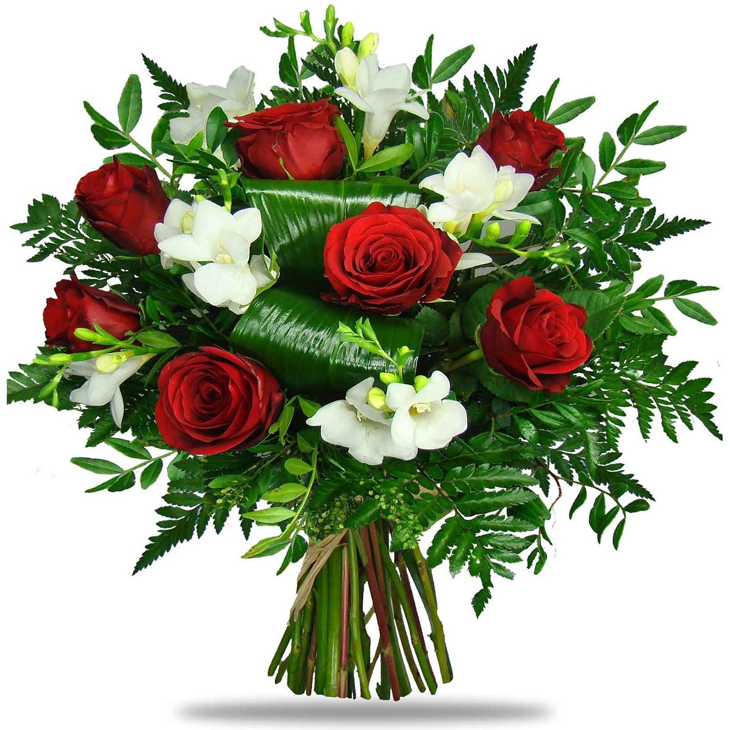 | Standardní | 5 ks rudá růže, 3 ks bílá frésie, dekorativní zeleň |