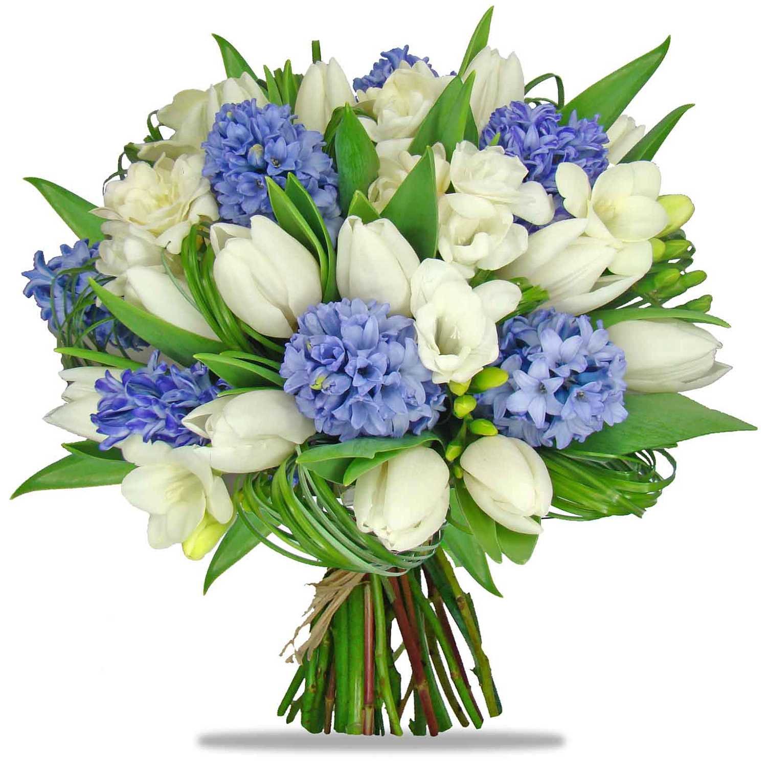 Elegantní spojení sněhově bílých tulipánů, modrofialových hyacintů a svěžích bílých frézií vytváří kytici s výjimečně jemnou atmosférou. Tyto květiny společně působí harmonicky a elegantně, což oceníme při každé slavnostní příležitosti i jako milé překvapení pro své blízké. Výsledek působí svěže a vzdušně, přírodní zeleň celé aranžmá krásně podtrhuje. Kytici připravují naši zkušení floristé s maximální péčí, vždy s důrazem na profesionální zpracování a precizní prezentaci. Doručujeme ji v den objednávky během pracovních dnů a nabízíme možnost přesně zvolit čas doručení. O spolehlivém doručení vás navíc budeme informovat potvrzením e‑mailem.