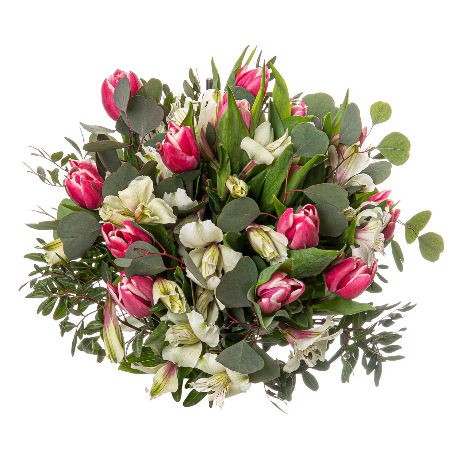 Naše jemná a svěží kytice spojuje romantiku tulipánů v sytě růžových tónech s elegantní bělostí alstromerií. Eucalyptus dodává celku decentní šmrnc a přírodní lehkost, dekorativní zeleň celou kompozici dokonale podtrhuje. Výsledkem je harmonický a přirozený celek, který rozzáří každý interiér a potěší při jakékoli příležitosti – ať už chcete vyjádřit vděčnost, lásku nebo prostě jen udělat radost. V den objednávky během pracovních dnů doručujeme spolehlivě a na požádání si můžete zvolit přesný čas doručení. O každém předání vždy dostanete potvrzení e-mailem.