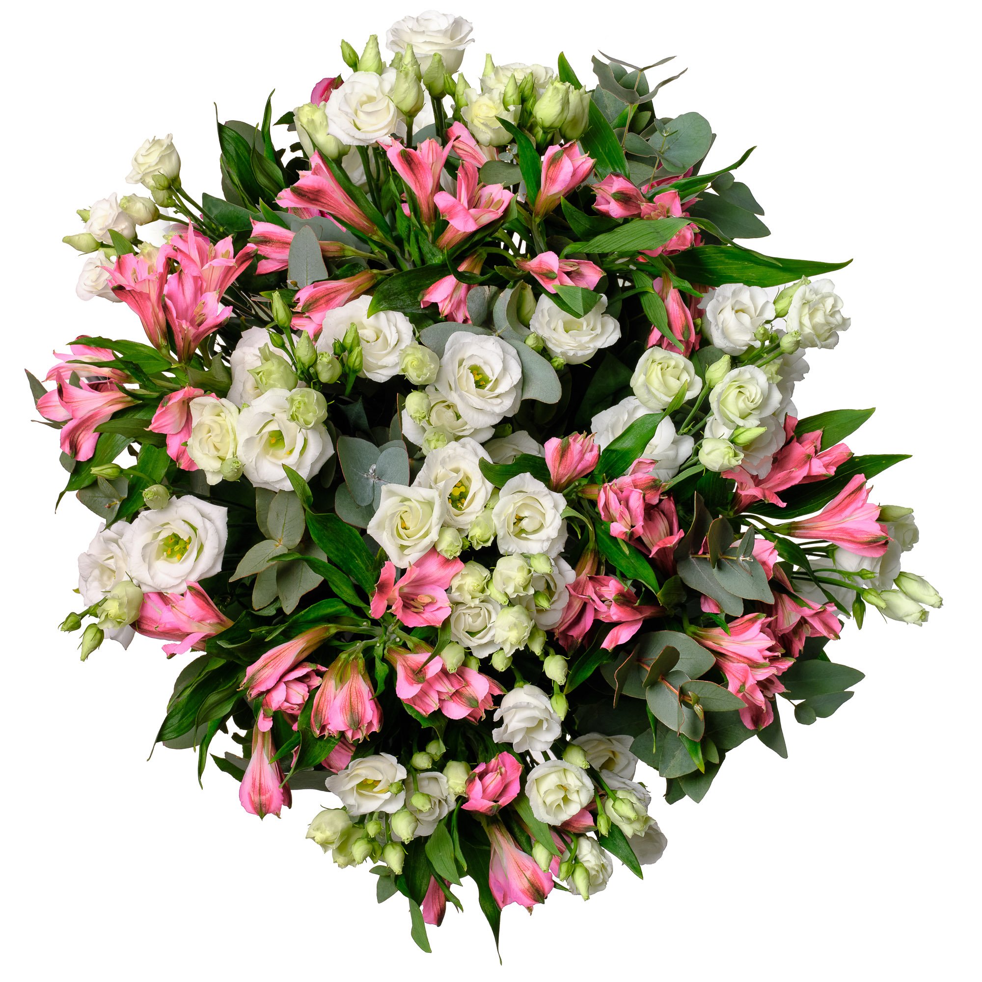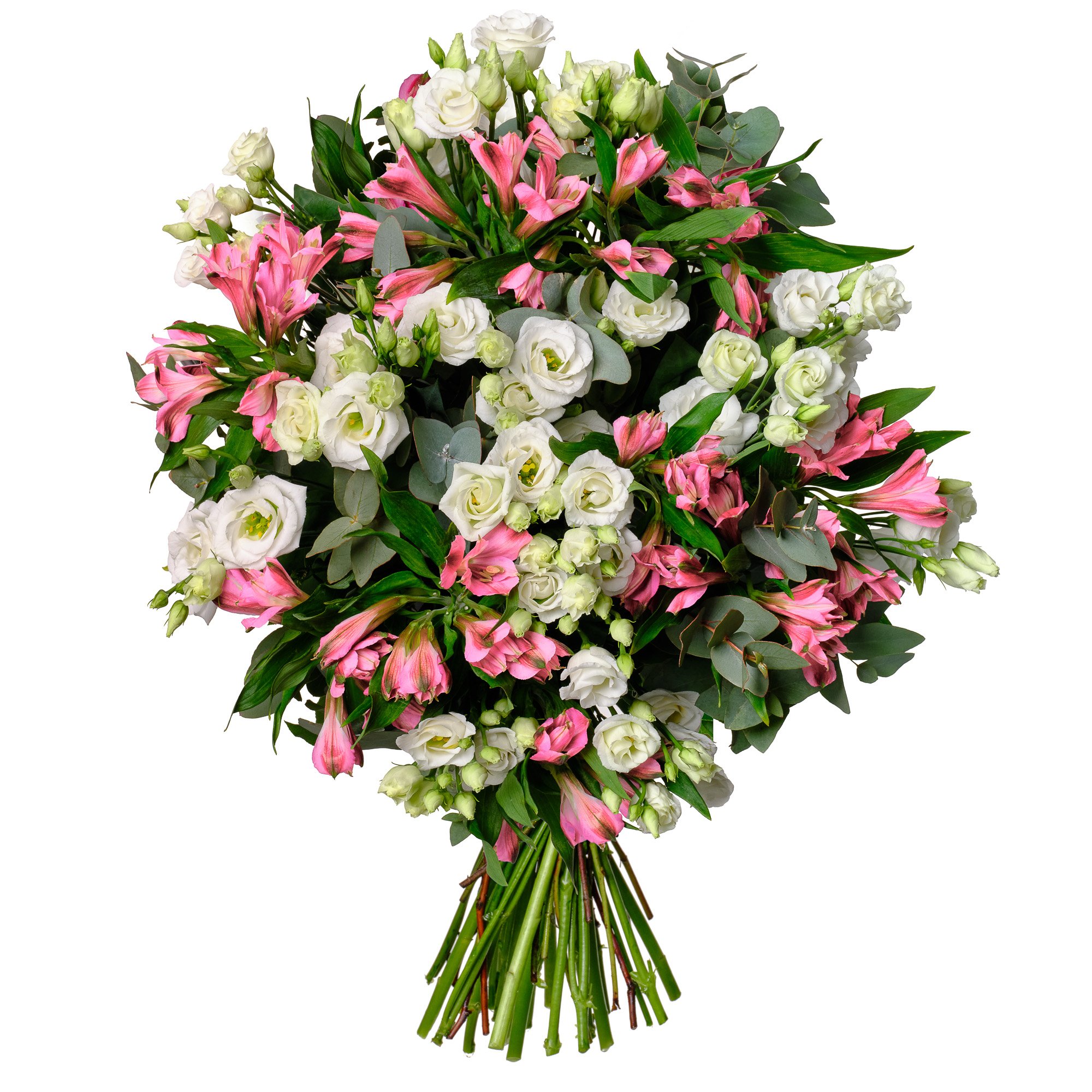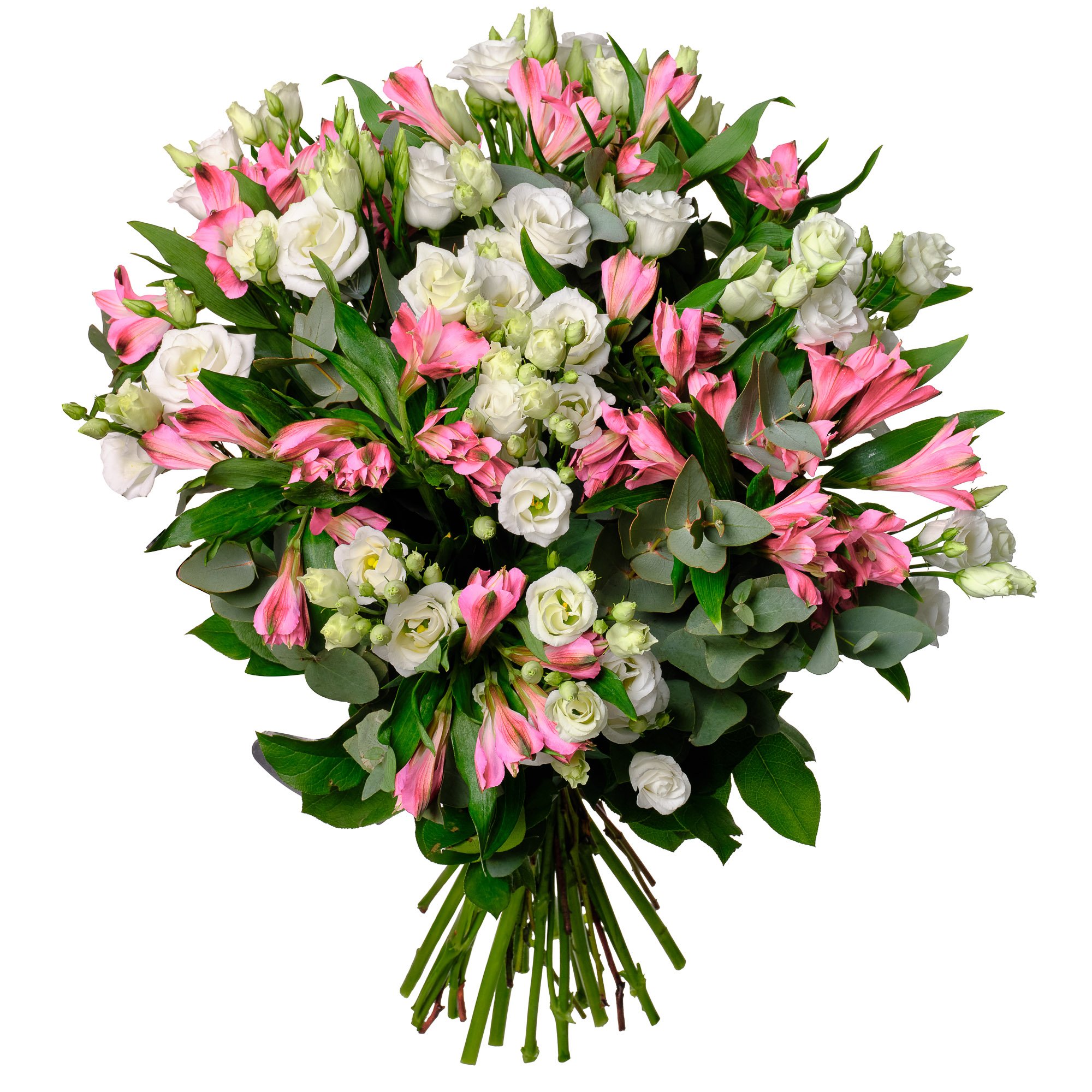 Jemná kombinace bílých eustom a růžových alstromeřií vytváří dokonale vyváženou kytici, která působí svěže a optimisticky. Elegantní zelené akcenty listů eukalyptu a salalu podtrhují krásu jednotlivých květů a dodávají aranžmá atraktivní strukturu. Tato kytice je ideální volbou pro oslavu výjimečných okamžiků, jako je narozeninová gratulace, poděkování nebo radostné překvapení pro milovanou osobu. Dodání v den objednávky během pracovních dnů je pro nás samozřejmostí, stejně jako možnost objednat si přesný čas doručení. Naše kytice vždy vážeme s důrazem na profesionální úroveň a pečlivou prezentaci, abyste si každé předání mohli skutečně užít.