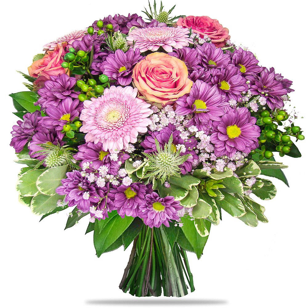 Naše kytice zaujme svým okouzlujícím spojením jemných růží, svěžích santini, něžných germínek, originálních eringin a drobných hypericum. K tomu přidáváme decentní gypsophilu a sezónní zelené doplňky, které celou kompozici dokonale sjednocují a dodávají kytici svěží vzhled. Díky harmonii fialových a růžových tónů působí výjimečně elegantně a optimisticky – ideální volba pro každodenní potěšení, poděkování či oslavu významné události. Doručujeme v den objednávky během pracovních dnů, s možností objednat si i přesný čas doručení. Naše kytice jsou vždy profesionálně uvázané zkušenými floristy a na doručení se můžete zcela spolehnout – potvrdíme vám jej e-mailem.